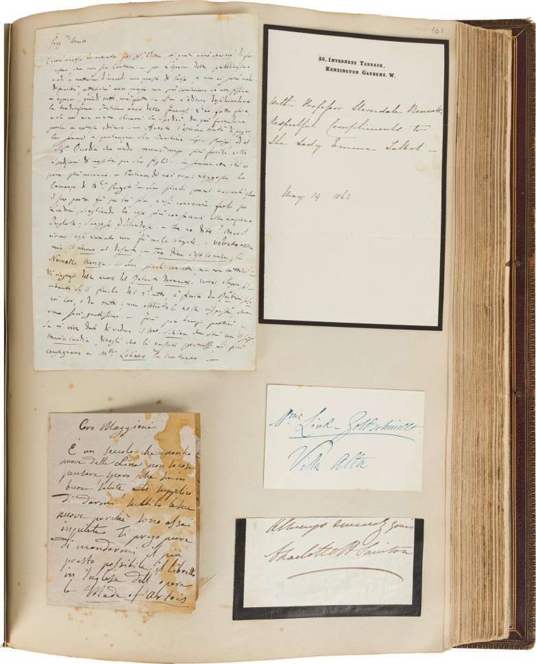The family are descended from Lord Stanley’s only daughter, Lady Emma Stanley, who was disinherited when she turned down her father’s choice for a husband and instead married his private secretary, Patrick Talbot. One of the few family possessions Lady Emma retained was this autograph collection. It was later augmented by Lady Alice Stanley, wife of the 17th Earl of Derby and lady in waiting to Queen Alexandra, wife of Edward VII.