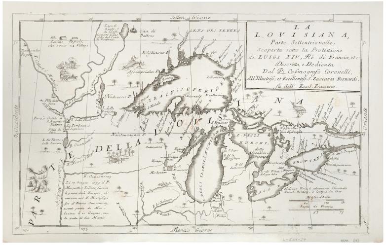 Vincenzo Coronelli's engraved map of the Great Lakes region (1695). Estimate: $7,000-9000