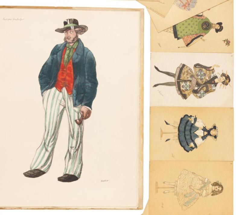 Some lots of particular interest are also slightly stepping out of the book section. A complete set of 12 postcards [with] Bakst [Inedited Works of Bakst] by Léon Bakst will be offered during the sale (Estimate: $5,000-$8,000). It is a rare set of the Feya Kukol (The Fairy Doll) postcards created to benefit the St. Eugenia Red Cross Society in 1904. The images are taken from Bakst's costume designs for Feya Kukol, a ballet produced at the Hermitage Theater in February of 1903 for the Tsar's family.