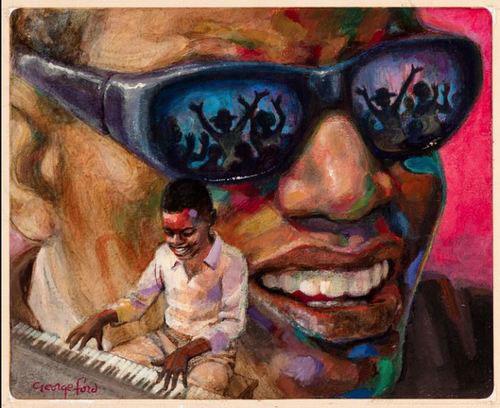 George Ford, Illustration for Ray Charles by Sharon Bell Mathis (Lee & Low Books).