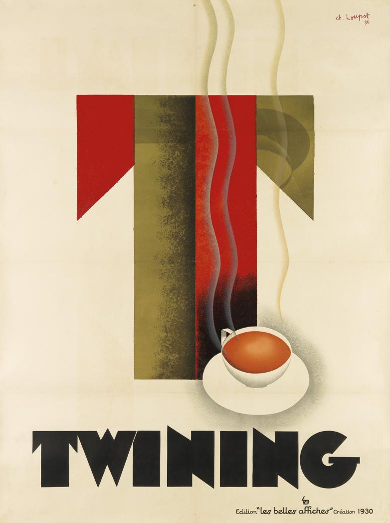CHARLES LOUPOT (1892-1962) TWINING. 1930. 63x47 1/4 inches, 160x120 cm. Les Belles Affiches, Paris. Sold for $20,000