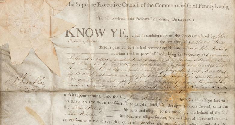 Benjamin Franklin partly printed document signed (“B. Franklin”), as President of the Supreme Executive Council of Pennsylvania, 6 August 1787. Estimate: $12,000-16,000