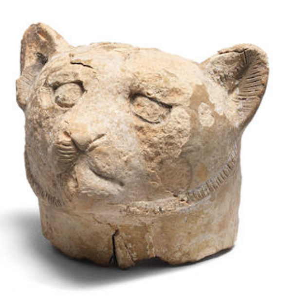 Egyptian terracotta lion head, dating to c. 323-30 BC.