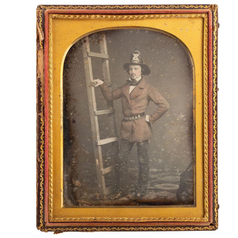 Half plate daguerreotype of firefighter Walter Van Erven Dorens, ca. 1854-1856. Estimate: $15,000-25,000