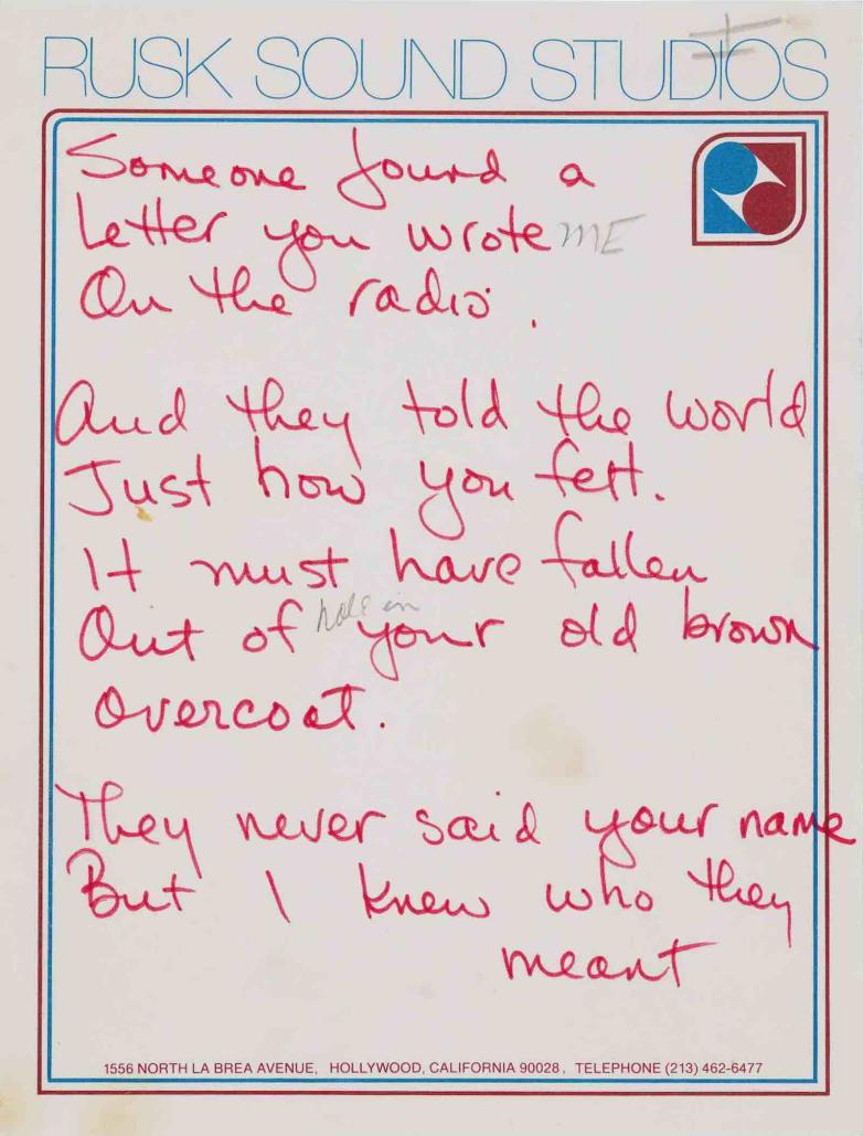 Manuscript lyrics for On the Radio