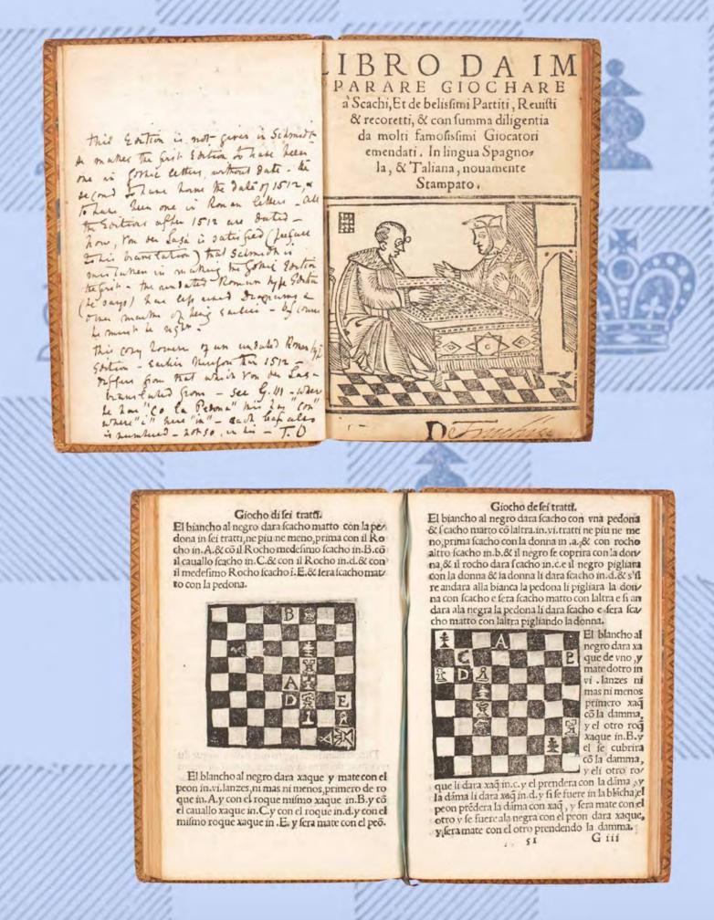 * The works of Damiano, Ruy-Lopez and Salvio, on the game of chess by Jacob Henry Sarratt, 1813. Includes “the elements of the art of playing without seeing the board.”