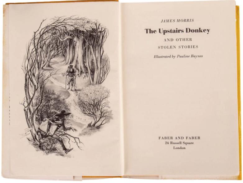 First UK edition, incredibly scarce. This collection of short stories comes from sources across the globe. During Morris's time travelling the world as a foreign correspondent, she collected a whole host of interesting folk tales from a multitude of cultures, and presents a selection of them here, in The Upstairs Donkey. 'Wherever my work as a newspaper correspondent has taken me, I have filched local tales and legends, concentrating upon more the subtle and sophistocated kind of anecdote, and fighting shy of the whimsier folklore' (p. 7). This volume features wonderful full-page illustrations by Pauline Baynes throughout.