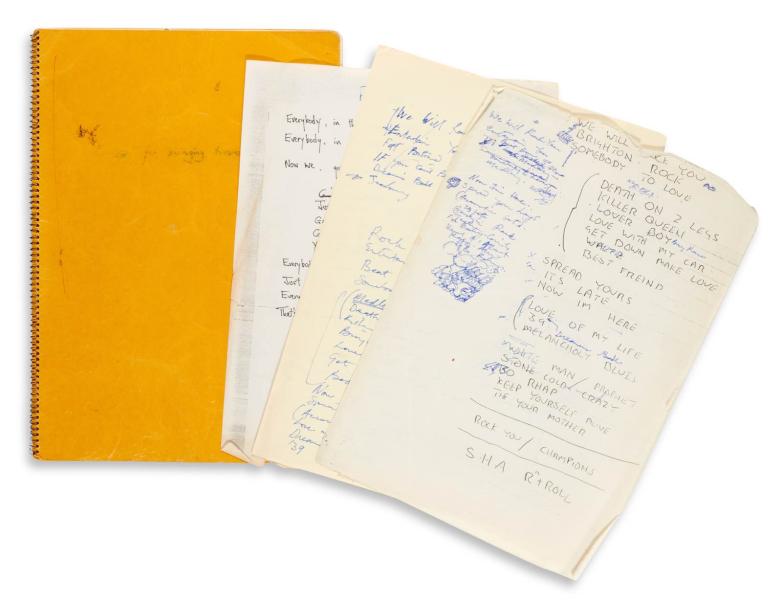 * seven leaves of autograph manuscript lyrics to Don’t Stop Me Now, estimated at £120,000-180,000