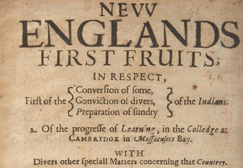 A first edition of New Englands First Fruits (1643). Estimate: $20,000-30,000