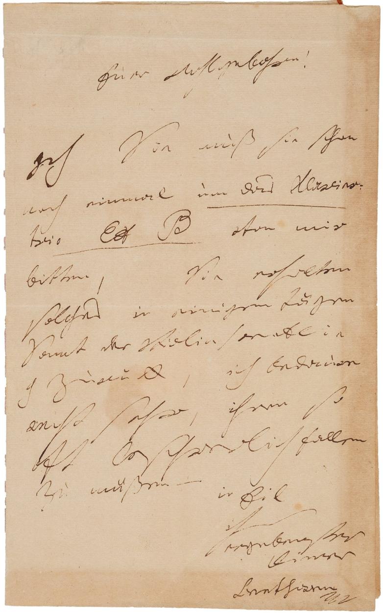 $27,500: A Franz Schubert Autograph Letter Signed "Schubert"