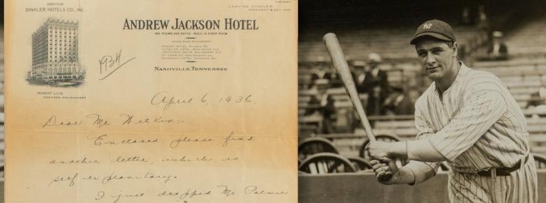 Top lots include a rare handwritten letter by Lou Gehrig, on Andrew Jackson Hotel letterhead, dated April 6, 1936. Rarely made available to the public market, handwritten letters from Gehrig are virtually nonexistent, with this neatly penned example—written a week before Gehrig would embark on his final MVP-winning season—representing the first our company has ever offered.