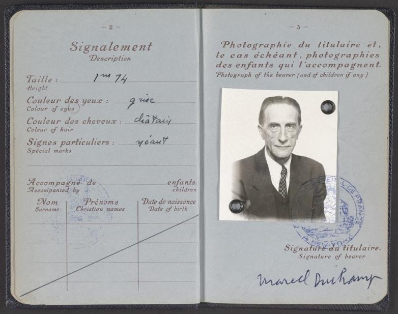 Marcel Duchamp Republique Française passport, October 22, 1954.