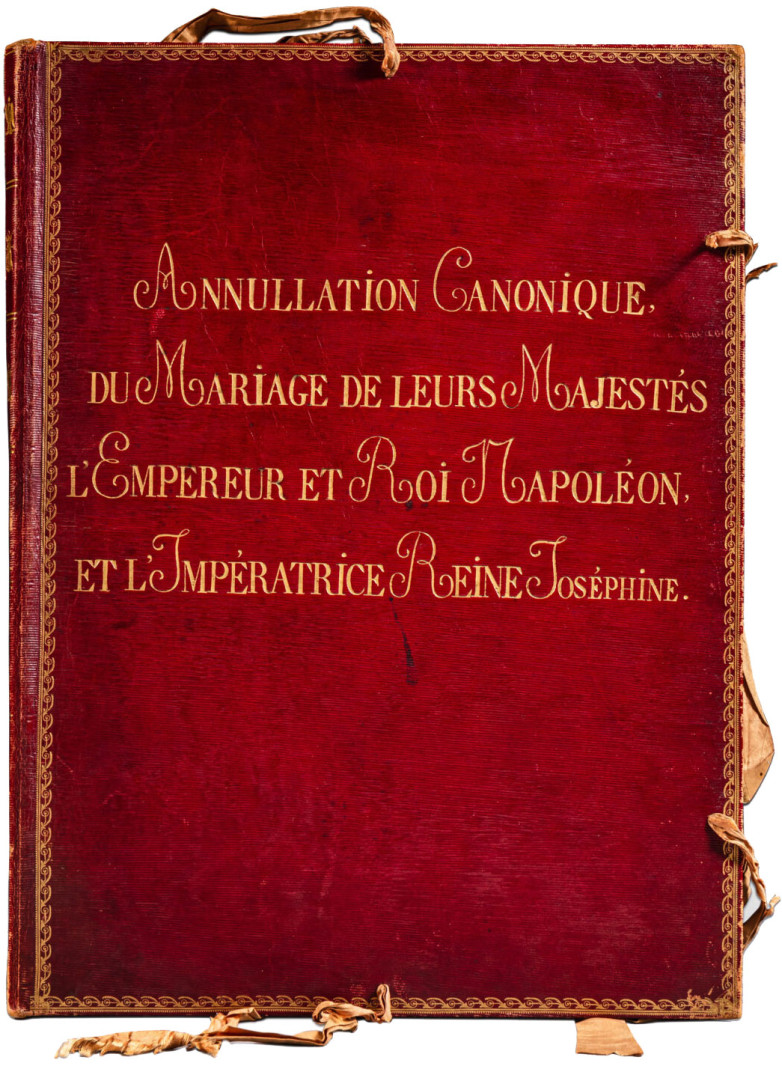 A large red folio originally containing all official documents of Napoleon’s divorce to Joséphine. Estimate: €50,000 - €80,000.