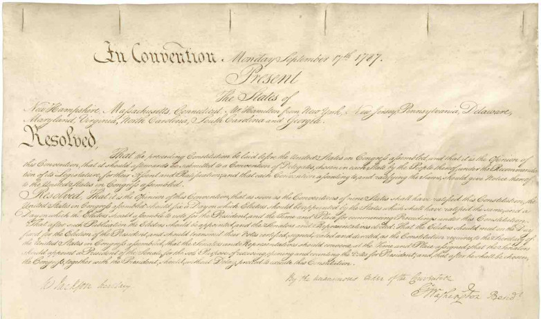 This historic display will also include the rarely displayed fifth page of the Constitution. This original document outlines a set of instructions to the States on how to implement the Constitution, signed by George Washington as President of the Constitutional Convention.