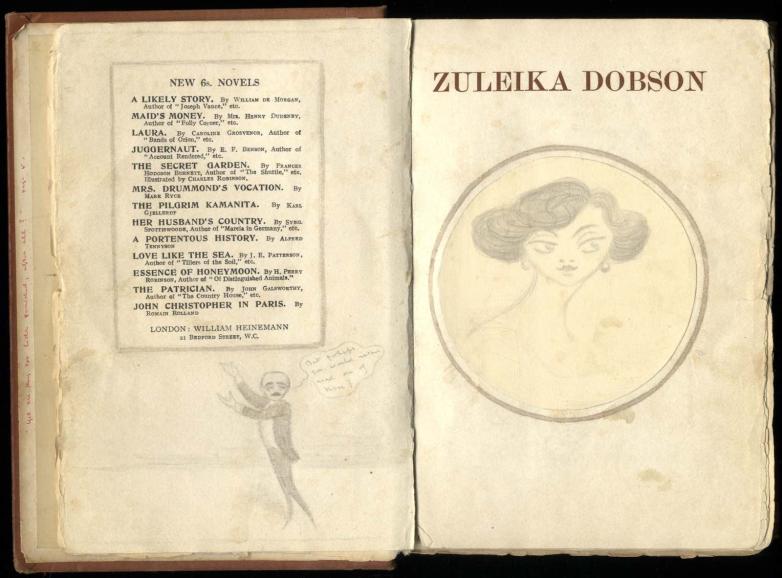 • six books “improved” by Max Beerbohm with drawings and notes, including his personal copy of his only novel Zuleika Dobson