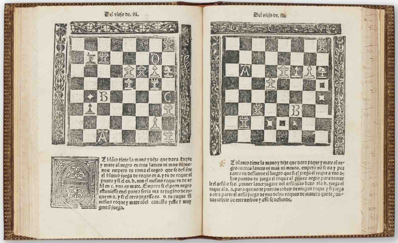 Luis Ramírez de Lucena's Repetición de Amores y Arte de Ajedrez (Salamanca: Leonardo Hutz and Lope Sanz, 1497) was written shortly after the modern rules of chess had emerged in the 1470s making the queen far more powerful, and Lucena describes both old and new versions in his book which also includes Repetición de Amores, an anti-feminist poem.