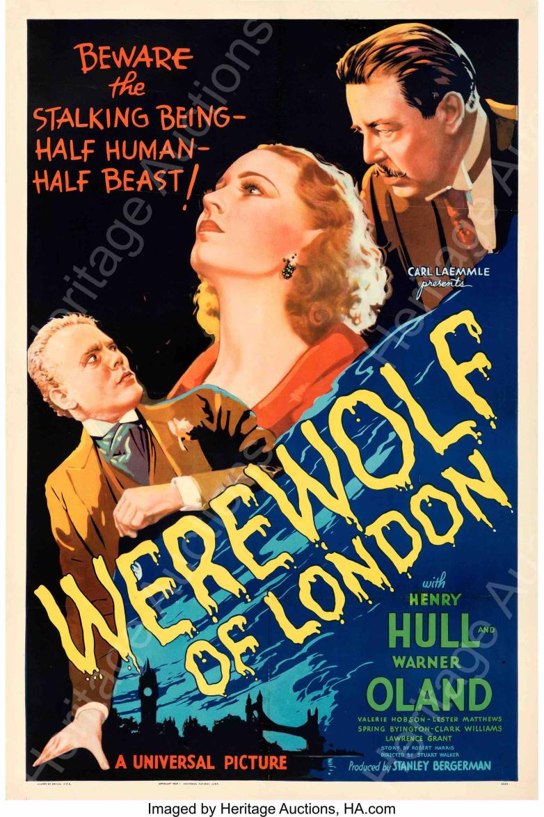 Werewolf of London (Universal, 1935) One Sheet (estimate: $60,000-120,000) is as rare as it gets, the only known one sheet from the horror classic in this style (two styles were created).