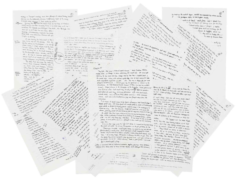 The heavily corrected drafts by O'Brian (1914-2000) in black and occasionally blue ink run to 47 leaves, with text on rectos and occasional sentences and notes on facing verso. They date back to early May - December 1999, including details on 26 November when, writing at Trinity College Dublin, he appears to have mislaid his draft for chapter III.