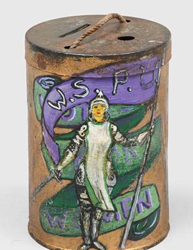A hand-painted women’s suffrage donation tin (1908-17), to be offered at the CA International Antiquarian Book Fair this weekend for $2,600.