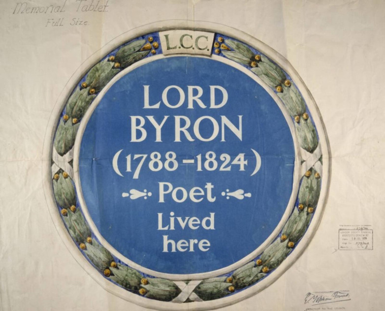 Design for the Byron Blue Plaque installed in 1867 but now missing