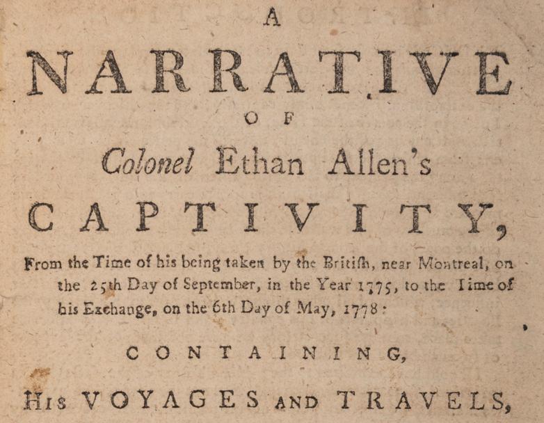 Rare second edition of A Narrative of Colonel Ethan Allen's Captivity (1779), offered at Potter & Potter this week.