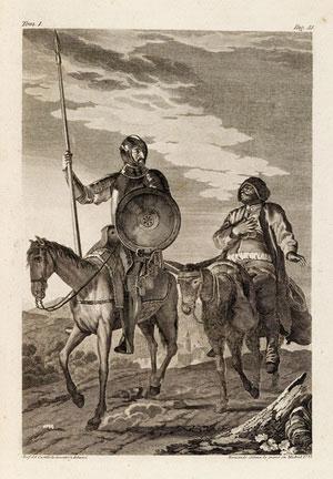 Sale title notwithstanding, three manuscripts rate the top estimates: a sixteenth-century prayer book with thirty-five miniatures and bound around 1800 in the style of Edwards of Halifax could fetch $20,000-30,000, while a mid-fifteenth century Book of Hours, Use of Rome, on vellum, is estimated at $15,000-20,000. A Dutch Book of Hours, Use of Utrecht, also from the middle part of the fifteenth century, could sell for $8,000-12,000. A copy of the first Ibarra edition of Don Quixote (1780, pictured above), rates the same estimate; it was once in the Kansas City Public Library.
