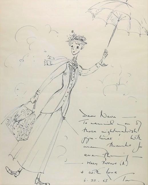 Ink drawing of Mary Poppins by Tony Walton, estimated at £3,000–4,000.