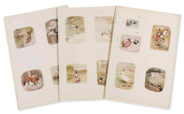 Uncut proof sheets of illustrations for Beatrix Potter's Jemima Puddle Duck, offered at Forum Auctions this week.