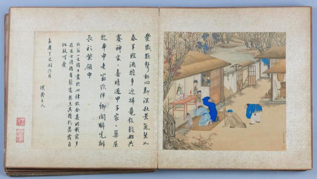 The Potomack Company holds a single-item sale on Wednesday, April 8 of an album of 46 illustrations by Jiao Bingzhen (active 1629–1728). The images are mostly of farming and weaving activities. The album also contains the ownership stamps of Gong Qin Wang Yixin (1833–1898), a son of Emperor Daoguang. The prince was a well-known collector, and this album is estimated at $100,000–200,000.