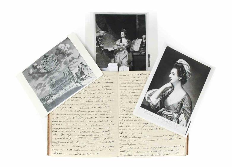 The diary is sold with a handwritten modern transcript of the diary and a wealth of research into the Broughton and Wicker families carried out by the vendor of the diary, along with printed photographs of portraits of Lady Broughton by Sir Joshua Reynolds and Francis Cotes.