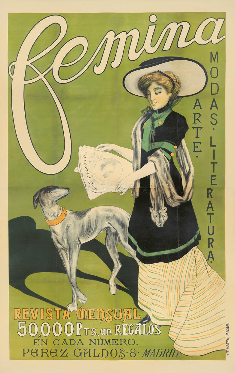 The auction will kick off with a collection of posters from Spain, many of which are seen here for the first time. Largely from the Modernisme era, these designs herald the revival of Catalan culture and promote the democratization and integration of the arts, blending influences from Pre-Raphaelite painting, Japanese woodblock prints, and Belgian lithography. Highlights include Alejandro de Riquer’s 1900 The Four Seasons (est. $7,000-$9,000); Femina, by an anonymous artist (est. $4,000-$5,000); and Carlos Verger Fioretti’s 1911 Barcelona / Ciudad de Invierno (est. $4,000-$5,000).
