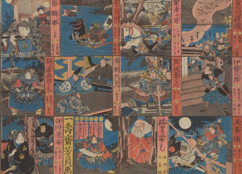 Detail from “Life of Yoshitsune,” a board game of his meritorious deeds.