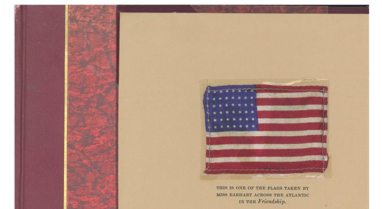The limited edition book was published by New York: G.P. Putnam's Sons, 1928. Earhart signed it on the limitation page, ''Amelia M. Earhart,’’ where the copy is designated as #67 in the limited edition of 150. The volume is full of photographs documenting Earhart's groundbreaking transatlantic flight in 1928, and contains one of the U.S. flags carried aboard her aircraft ‘‘Friendship,’’ affixed to the front pastedown. The flag is described on the limitation page as ''one of the small silk flags which Miss Earhart carried in the 'Friendship' from Boston to Wales.’’ The copy also has excellent association, previously belonging to the pilot Janet Dietrich (with two of her business cards included), one of the women of Mercury 13, a privately funded program that trained 13 women according to the same physiological screening standards as the Mercury 7 astronauts. The book is bound in publishers maroon and gilt boards, with deckled edges. It runs 374pp. and measures 6.5'' x 10''; flag measures 3'' x 2.25.'' Light shelf wear, otherwise an exceptional near fine copy.