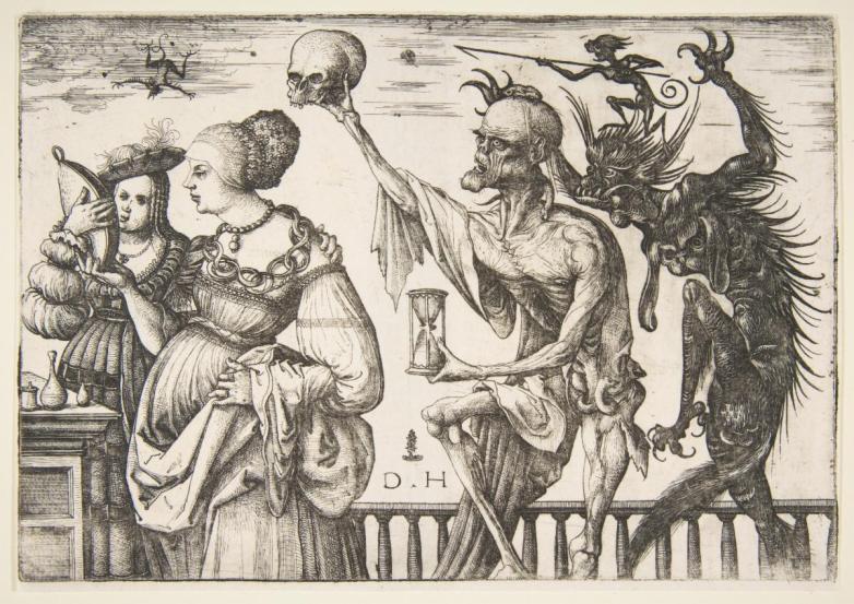 Daniel Hopfer (German, 1471–1536). Death and the Devil Surprising two Women, ca. 1500–1510. Etching; first state of two.