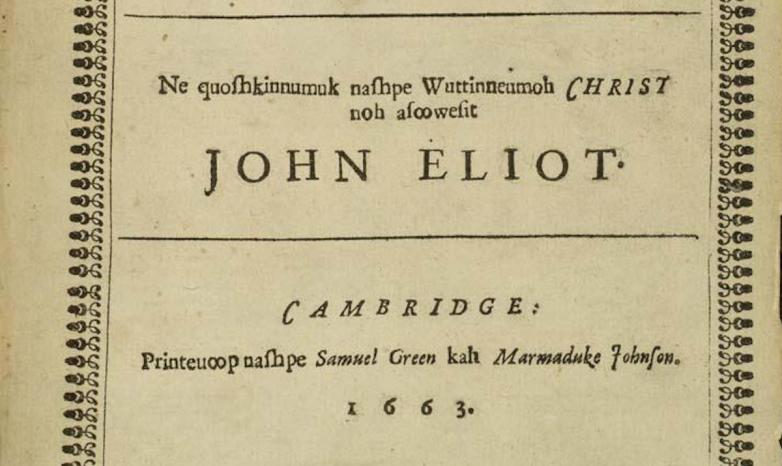 The first Bible printed in America: John Eliot’s “Indian Bible,” Mamusse Wunneetupanatamwe Up-Biblum God. Cambridge, 1663 & 1661.