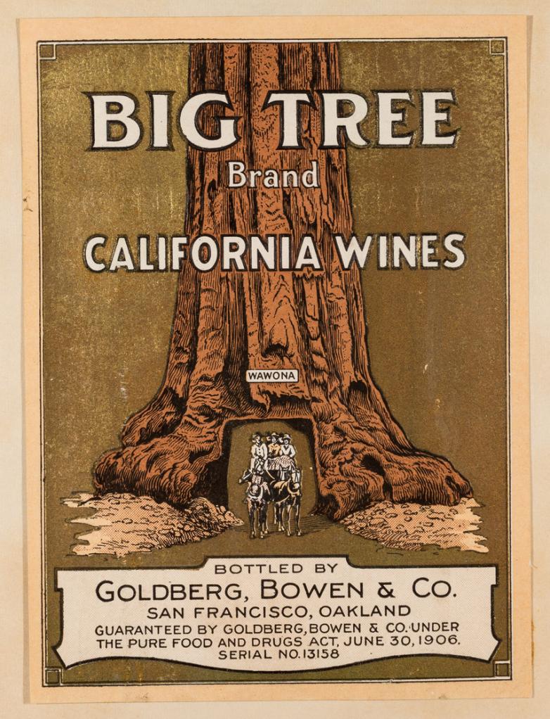 This Big Tree Brand California Wines label is one of over 5,000 historic wine labels collected by former UC Davis Professor Maynard Amerine, who was a driving force behind California’s post-Prohibition wine industry.