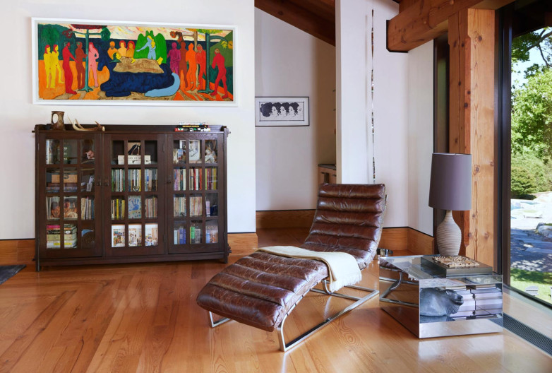 From L to R in the Abrams family home - Bob Thompson, Nativity Scene; John Wesley, Secrets; Heinz Mack, Light-Line; Arnaldo Pomodoro, Untitled