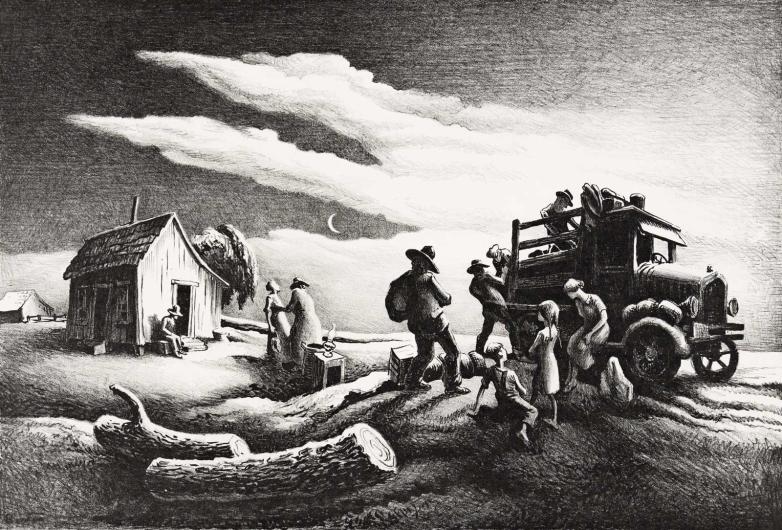 Thomas Hart Benton's 1939 lithograph "The Departure of the Joads," one of 100 copies, offered at PBA Galleries this week.