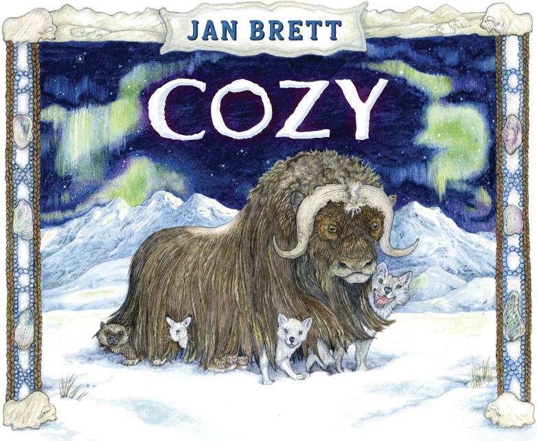 The dust jacket art from Jan Brett’s 2020 bestselling picture book, Cozy.