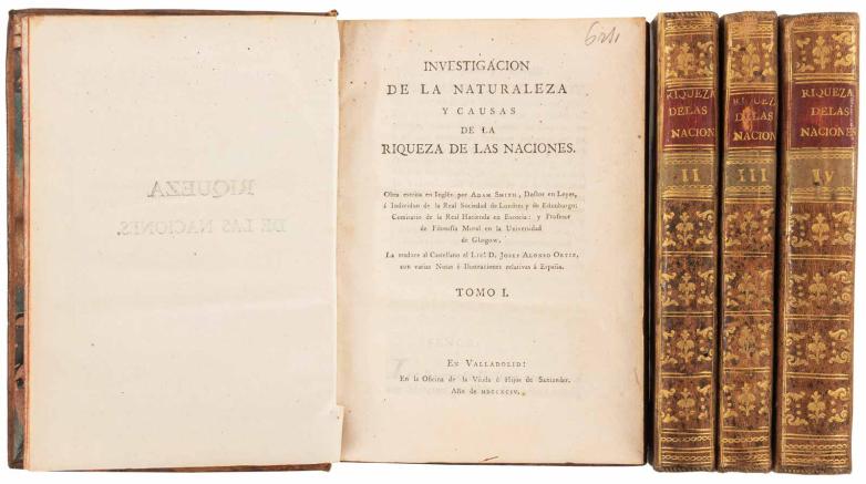 Highlights include the first edition in Spanish of "Investigación de la Naturaleza y Causas de la Riqueza de las Naciones ("Research into the Nature and Causes of the Wealth of Nations") by Adam Smith, a rare work in the market considered to be the starting point for modern economy.