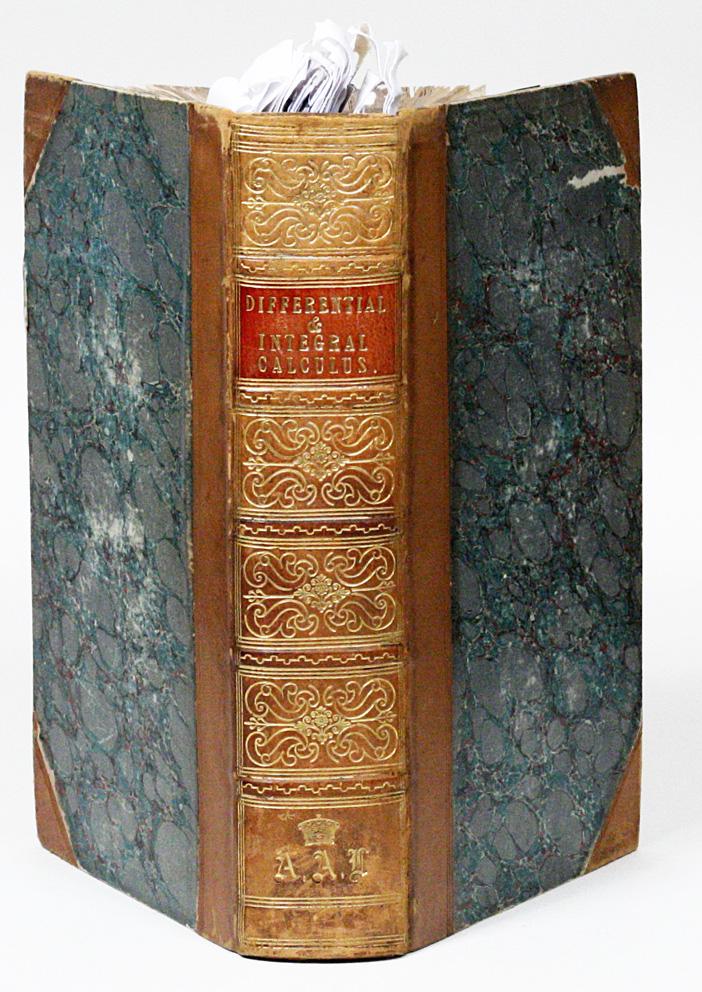 The book, titled An Elementary Treatise on the Differential and Integral Calculus, was originally published in French, in 1802, having been written by French mathematician Silvestre François Lacroix (1765-1843). It was translated into English in 1816, by Charles Babbage and two other students at Cambridge University. The book is Lovelace’s copy from that first English edition.